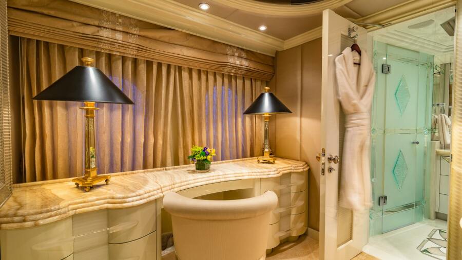 - Expansive swim platform beach club, water slide, 2 Sea-Doo’s, and tender storage
