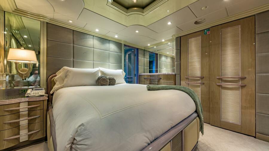 - Accommodates 10 guests in 5 staterooms, including on-deck master with office